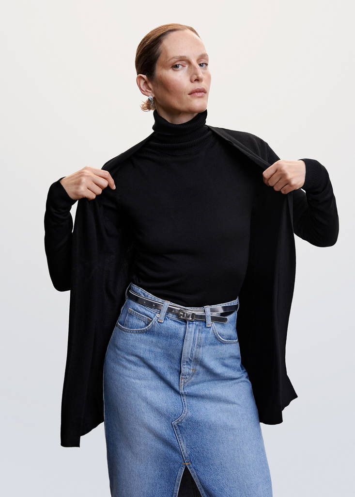 Тонкий трикотаж. Прямой фасон. Стандартный дизайн. Воротник с ниспадающими лацканами. Длинные рукава. Края связаны резинкой. Без застежки. Доступно в Plus