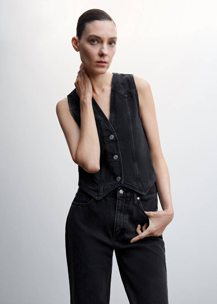 Жилет из денима с декоративными строчками
