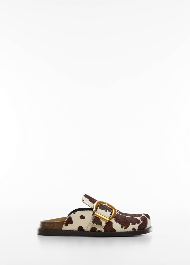 100% коровья кожа. Стиль сабо. Анималистический принт. Коровий принт. Круглый мыс. Обувь на плоской подошве. Сезон фестивалей