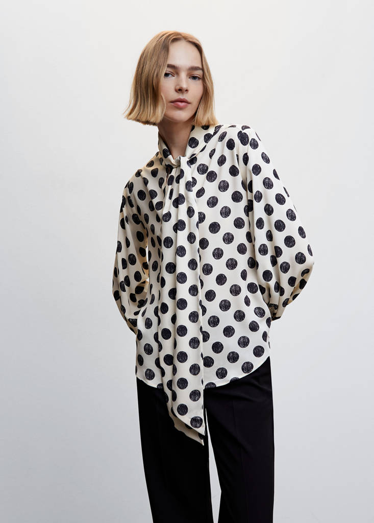 Блузка в горошек с бантом