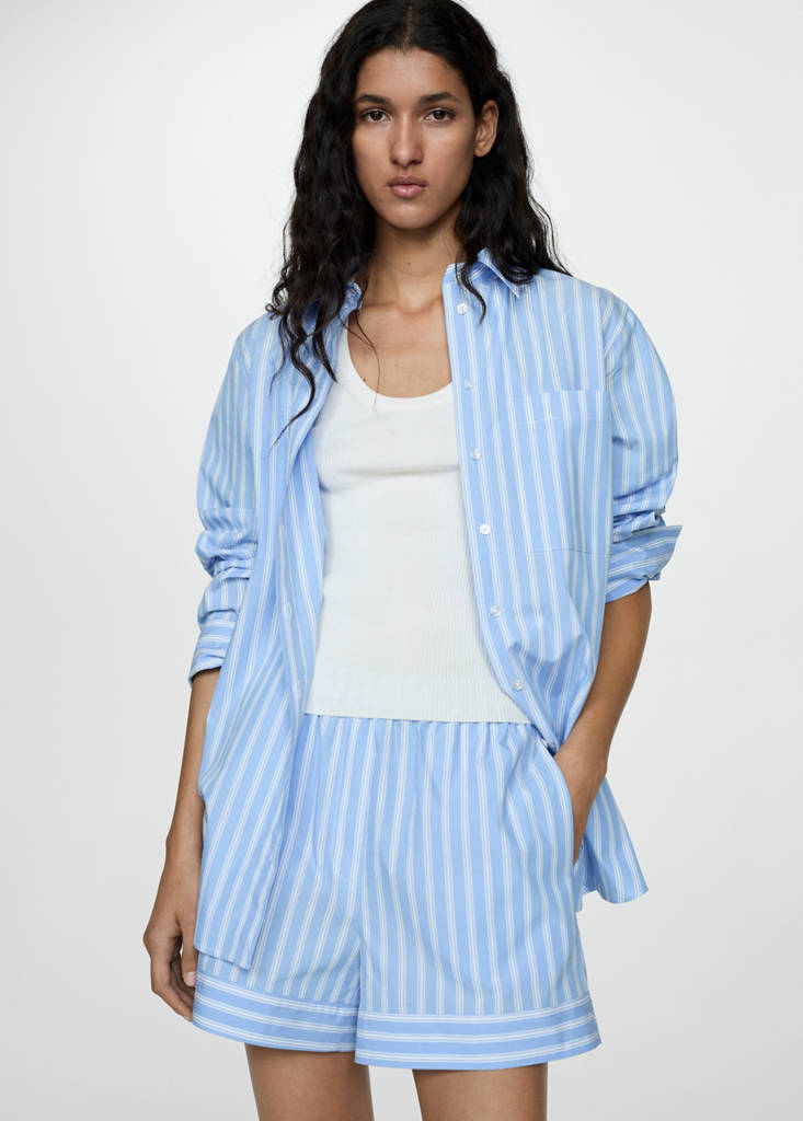 Прямой крой. Принт в полоску. Рубашечный воротник. Длинные рукава. Спереди накладной карман. Total look. Передняя застежка на пуговицы. Ткань 100% хлопок