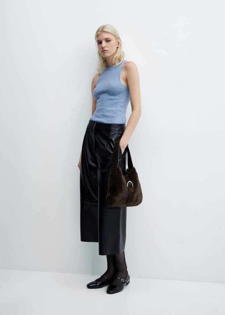Средний размер. В состав входит кожа. Эффект меха. Плечевой ремень. Застежка на пряжке. Внутренний карман. Подкладка