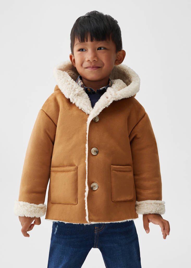 Искусственная замша. Прямой крой. Средняя длина. Круглый вырез. Капюшон. Длинные рукава. Два боковых накладных кармана. Внутренняя часть из овчины. Застежка на пуговицы спереди. Внутри этикетка для личных данных