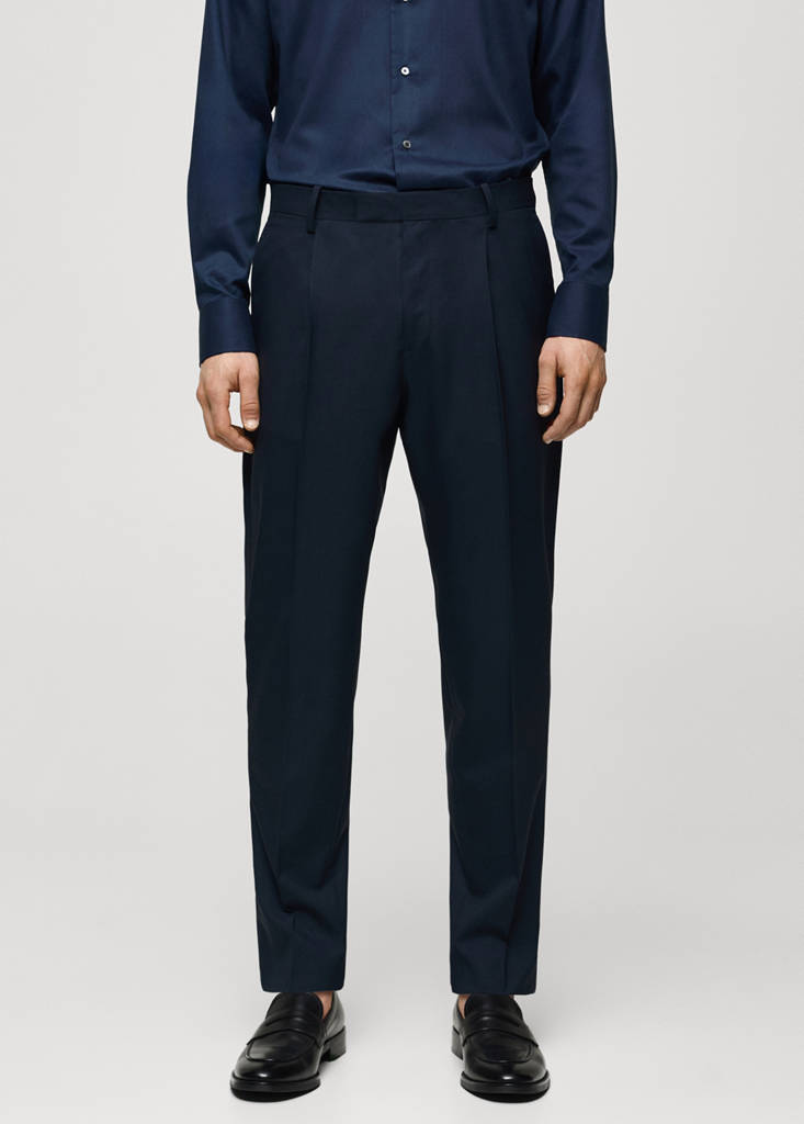 Ткань из 100% итальянской шерсти Vitale Barberis Canonico® — символ портновского мастерства. Разработано в Италии. Изготовлено в Португалии. Slim fit. Шлевки для пояса. Спереди застежка на молнию, два крючка и внутреннюю пуговицу. На внутренней стороне пояса пуговицы для подтяжек. Деталь передних складок. Два передних кармана. Два прорезных кармана с пуговицей сзади. Деталь с отутюженной стрелкой спереди и сзади
