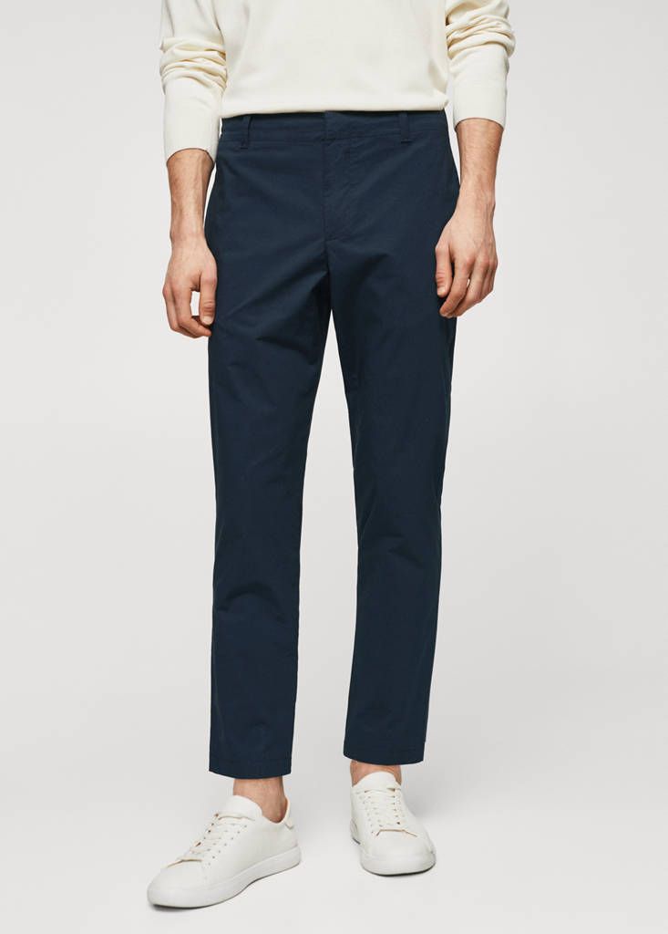 Slim fit. Изделие выполнено из хлопка. Застежка на пуговицу, молнию и шнурок. На талии эластичные сборки. Шлевки для пояса . Спереди два прорезных кармана. Сзади два прорезных кармана с пуговицами. Прямой низ. Коллекция базовых вещей