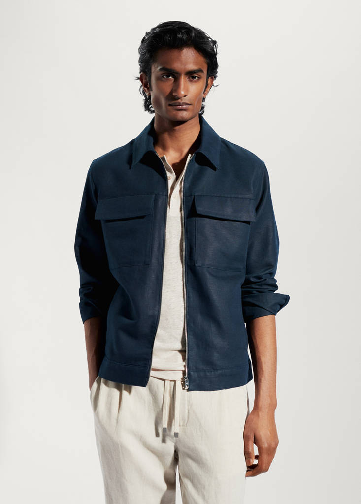 Regular fit. В состав входят лен и хлопок. Рубашечный воротник. Спереди застежка на молнию. По бокам два прорезных кармана. Длинные рукава с пуговицами на манжетах. Сзади регулируемые хлястики. Прямой низ. Подкладка. Внутри карман с застежкой на пуговицу. Рост модели: 187 см, размер: М. Коллекция базовых вещей. Кампания Антуан Гризманн
