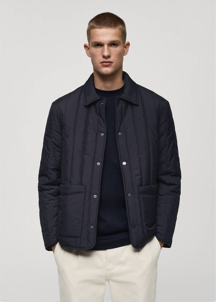 Переработанный полиэстер. Наполнитель 100% переработанный полиэстер. Стеганый дизайн. Рубашечный воротник. Передняя застежка на кнопки. Длинные рукава. Два накладных кармана спереди. Внутри карман с застежкой на пуговицу. Прямой низ. Водоотталкивающая: Прочное покрытие этого изделия защищает от легкого дождя, отталкивая воду и капли дождя. Терморегулятор: эта ткань обеспечивает оптимальную воздухопроницаемость для поддержания стабильной температуры