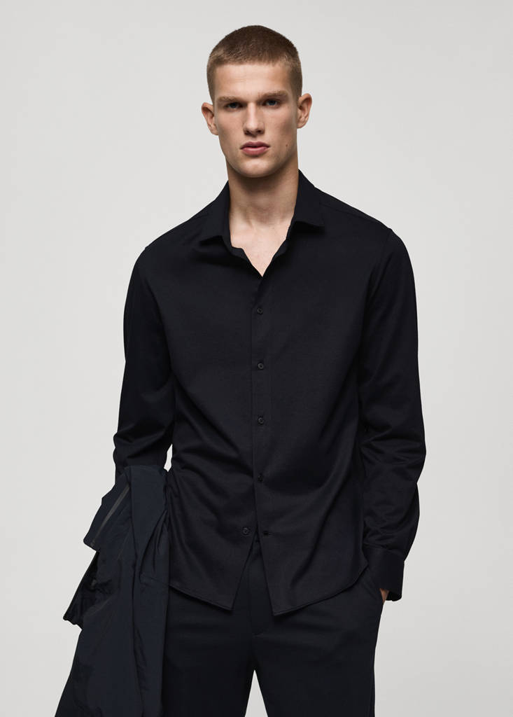 Коллекция Performance. Wrinkle free: ткань, не требующая глажки. Comfort Stretch: эластичная ткань, обеспечивающая дополнительный комфорт. Ткань Anti Odour: химическая обработка ткани устраняет бактерии и запахи. Прямой крой. Ткань с микроструктурой. Рубашечный воротник. Терморегулятор: эта ткань обеспечивает оптимальную воздухопроницаемость для поддержания стабильной температуры. Закругленный низ. Длинные рукава с пуговицами. Передняя застежка на пуговицы. Комфорт: одежда обеспечивает полную свободу движений и восстанавливает свою первоначальную форму