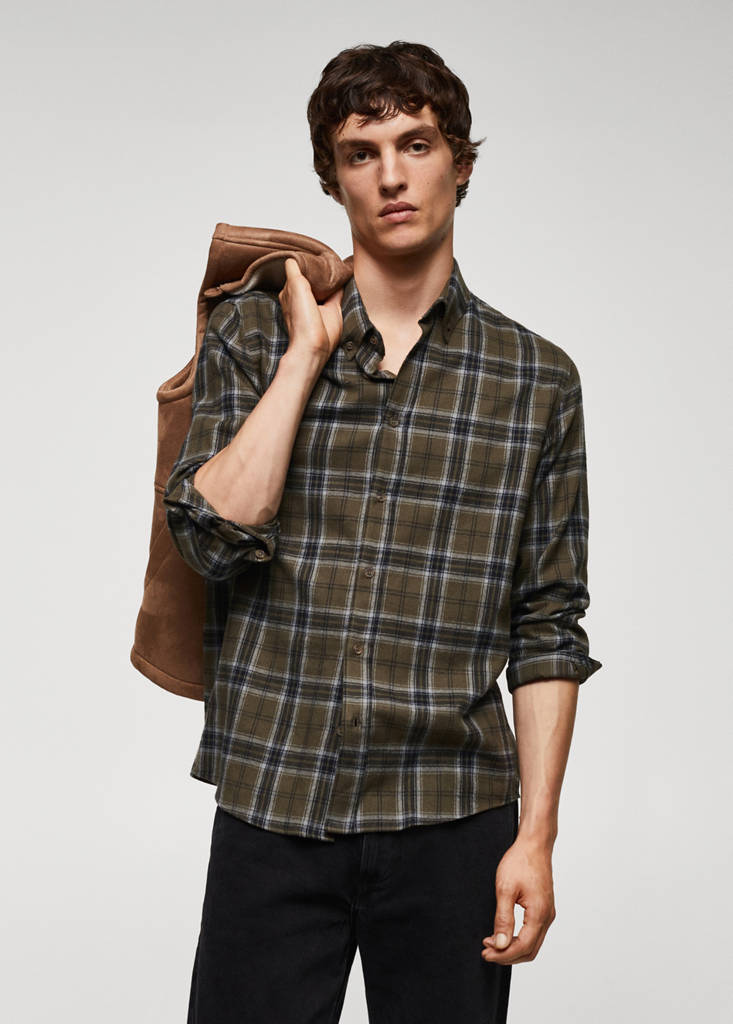Прямой крой. 100% хлопок. Фланелевая ткань. Узор в клетку оконная рама. Американский воротник с пуговицами. Длинные рукава с застежкой на пуговицы. Передняя застежка на пуговицы. Закругленный низ