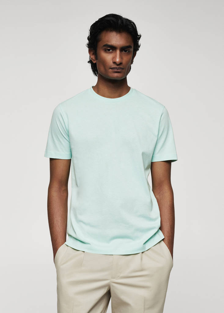 Ткань 100% хлопок. Slim fit. Круглый вырез горловины. Короткие рукава. Прямой низ. Рост модели: 187 см, размер: М