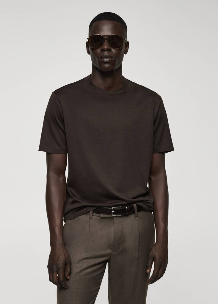 ESSENTIALS: Сделано, чтобы служить долго. Шоколадный и песочный цвета эксклюзивно онлайн. 100% хлопок. Легкая ткань из хлопка. Slim fit. Мерсеризованная отделка. Круглый вырез. Короткий рукав. Размер модели: М. Ткань 100% хлопок. Ткань из экологичного хлопка. Прямой крой. Стандартная длина. Силуэт Slim. 100% мерсеризованный хлопок. Круглый воротник с лацканами. Короткая длина рукава. Цвет слоновой кости только онлайн. Короткий рукав. Прямой низ