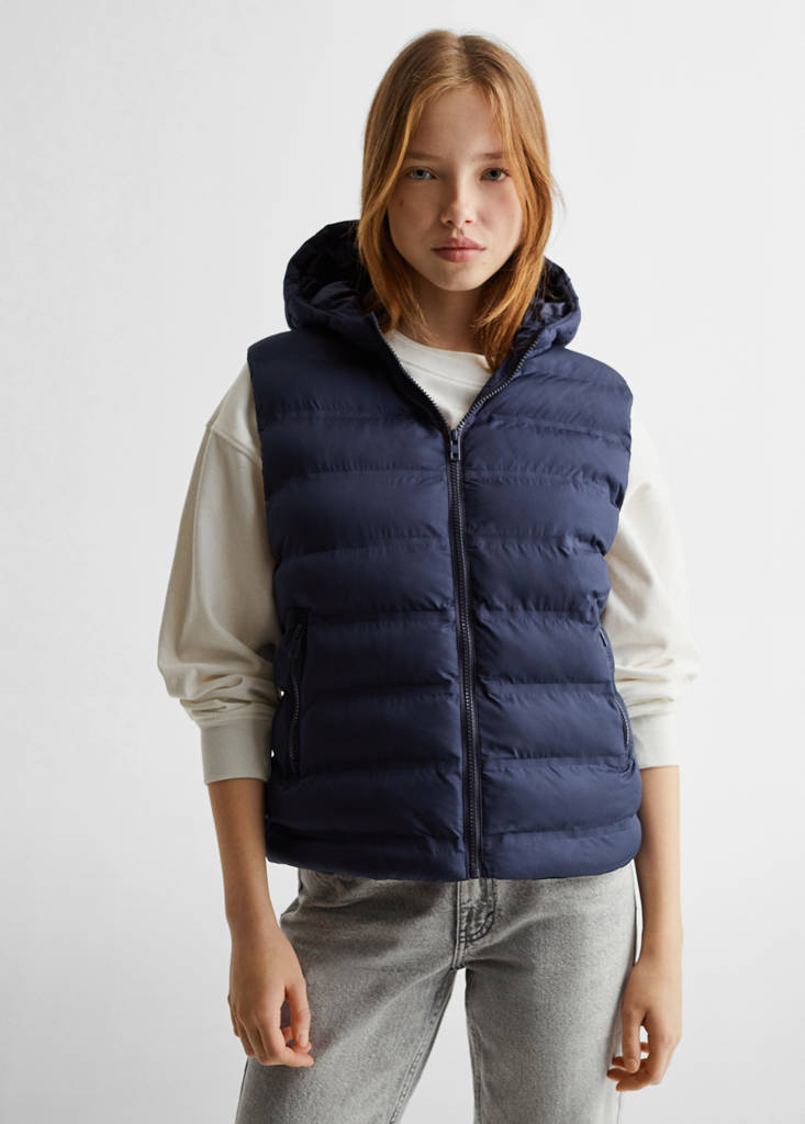 Изделие простегано. Прямой фасон. Стандартный дизайн. Капюшон. По бокам два кармана. Наполнитель из переработанного полиэстера. Подкладка. Без рукавов. Спереди застежка на молнию. Рост модели: 172 см, размер: L