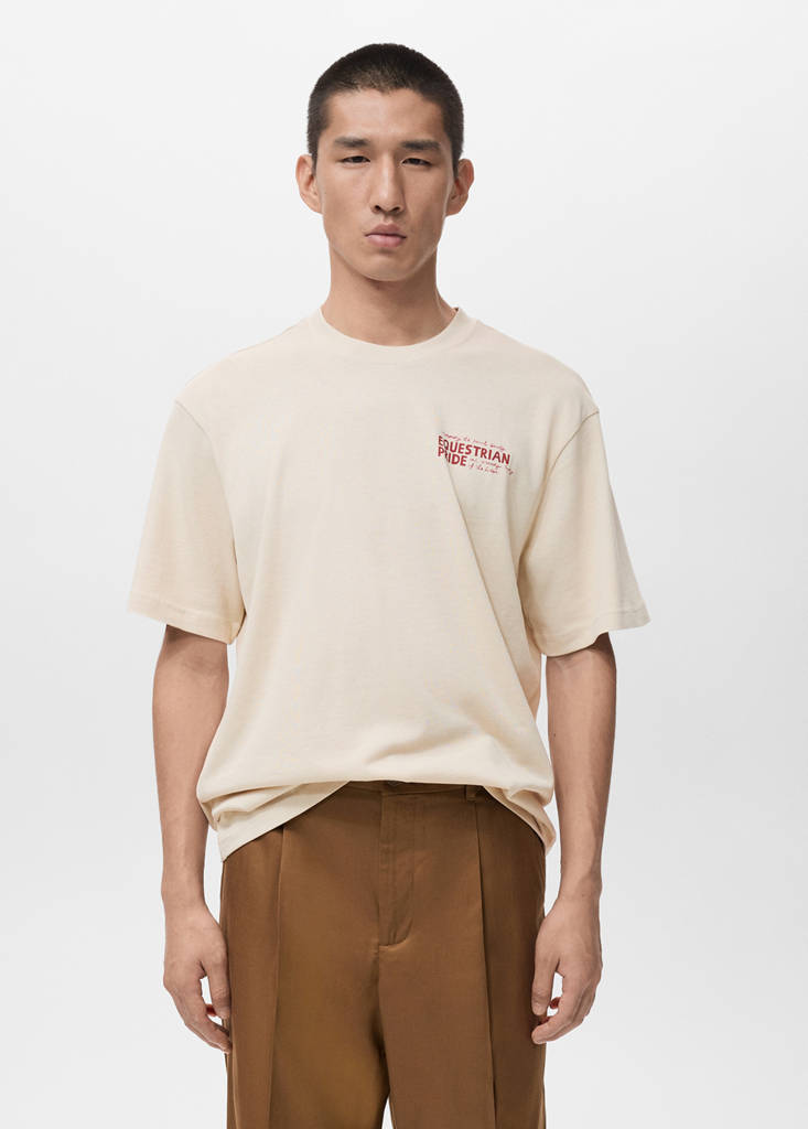 100% cotton fabric. Relaxed fit. Text printed on chest and back. Round neck. Short sleeves. Straight hem