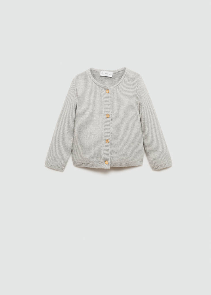 Button knit cardiganCurrent price [US$ 25.99 ]US$ 25.99Select a colourMedium Heather GreySelect your size1-3 months (62cm)Not available. I want it!3-6 months (68cm)Not available. I want it!6-9 months (74cm)Not available. I want it!9-12 months (80cm)Not available. I want it!12-18 months (86cm)Not available. I want it!18-24 months (92cm)Not available. I want it!MeasurementsNotify meAdd to WishlistSee lookFree delivery to storeFine knit fabric. Straight design. Round neck. Long sleeves. Front closure. Set available as total look. Front closure with buttonsDetails, composition and careStore availabilityItem qualitiesRecycled cottonAt least 20%This fibre is obtained from pre- and post-consumer textile waste that is transformed into new fabrics.