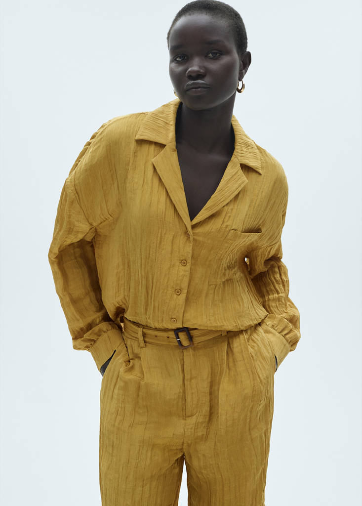 Pocket textured shirtCurrent price [US$ 69.99 ]US$ 69.99Select a colourMustardThe model is wearing size S and is 171cm tall.Select your sizeXSNot available. I want it!SNot available. I want it!MNot available. I want it!LNot available. I want it!XLNot available. I want it!DimensionsNotify meAdd to WishlistSee lookFree delivery to storeFlowy textured fabric. Straight design. Long sleeves with buttoned cuffs. Oversized design. Shirt collar. Total look. Button fastening at the front. Patch pocket on the chestDetails, composition and careStore availability