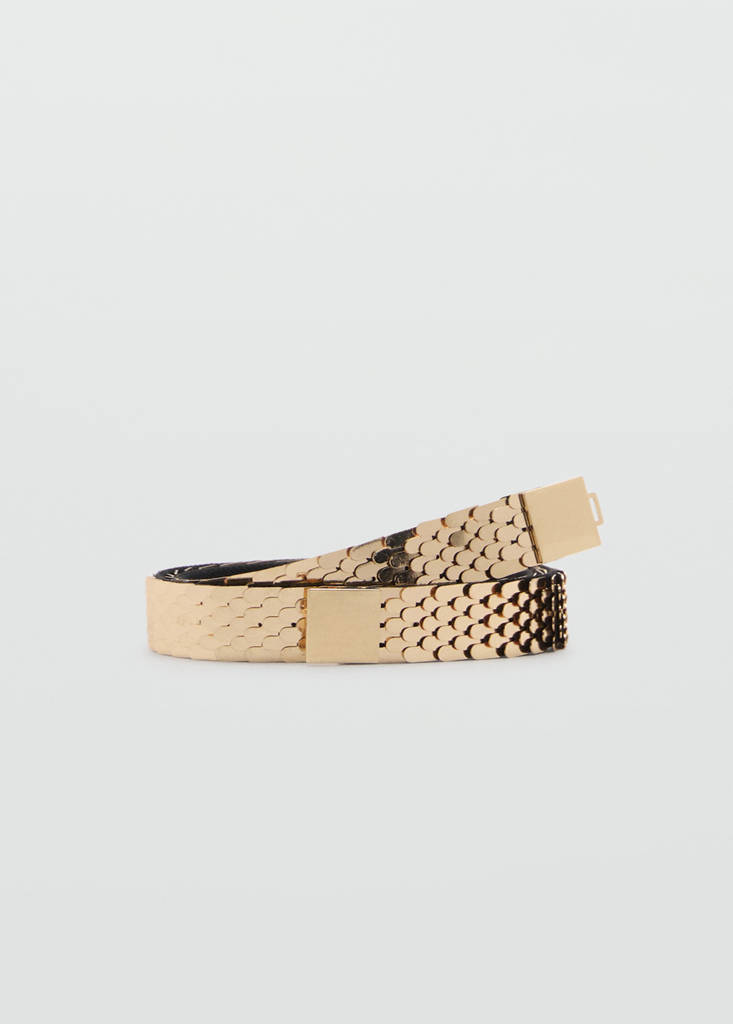 Ceinture fine métalliquePrix actuel [US$ 69,99 ]US$ 69,99Choisissez une couleurOrChoisissez votre tailleSNon disponible. Je le veux !MNon disponible. Je le veux !MesuresAlertez-moi. Ajouter aux FavorisVoir le lookLivraison gratuite en boutiqueDesign métallique. Fermoir clip métallique. Détail écailles. Collection fêtes, cérémonie et communionDétails, composition et entretienDisponibilité en boutique