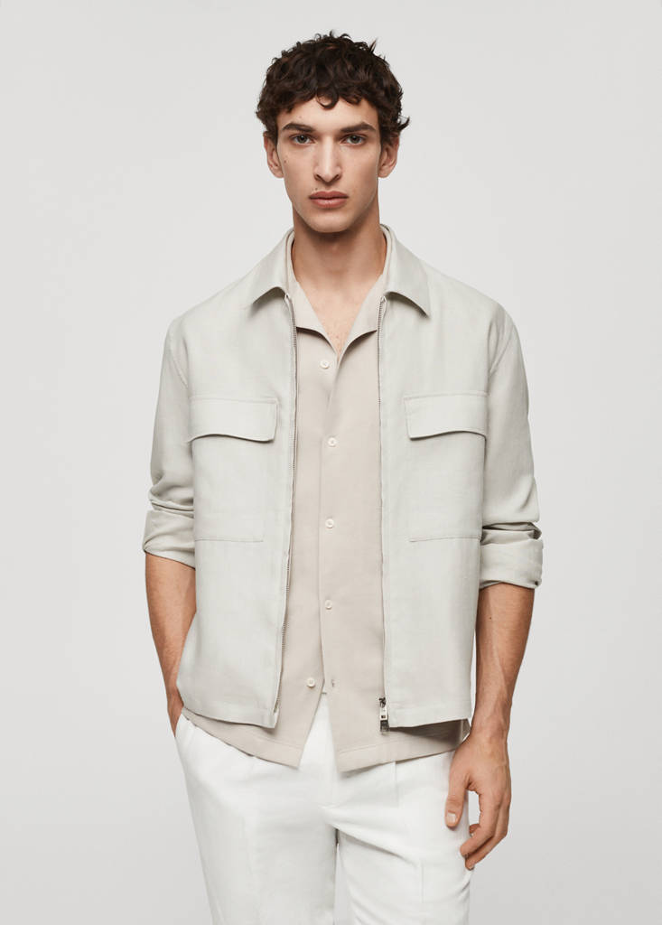 La couleur marron est exclusive en ligne. Tissu 100 % lin. Fermeture Éclair à l’avant. Deux poches à rabat à l’avant. Manches longues et poignets boutonnés. Ourlet droit. Col classique