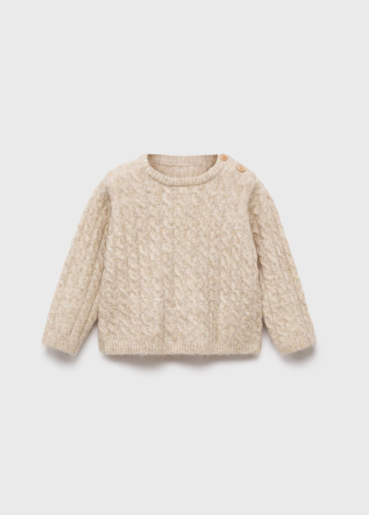 نسيج محبوك. غرز كبيرة. تصميم مستقيم. رقبة مدورة بإبزيم زر. أكمام طويلة. Total look. مجموعة عيد الميلاد. طقم متاح كإطلالة كاملة