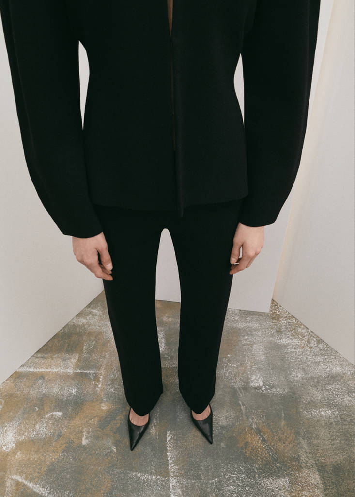 نسيج محبوك. تصميم طويل. تصميم مستقيم. خصر متوسط. خصر برباط مطاطي. بدون إغلاق. معطف مفتوح بالطول من الجانب. Total look