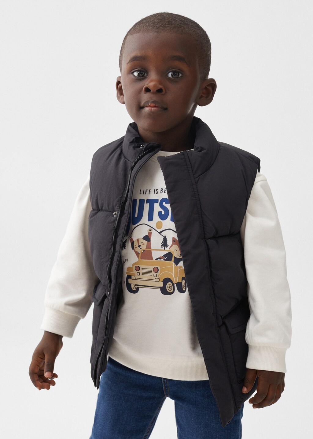 تصميم مبطن. تصميم مستقيم. جيبان جانبيان. رقبة مدورة. بدون أكمام. إبزيم بسحاب وزر واحد.