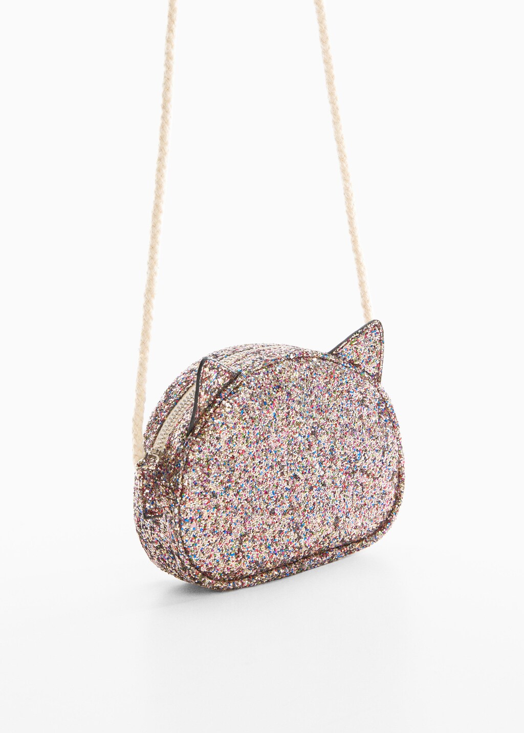 Polyurethane tissue. Ears detail. Glitter detail. Rope handle. Long strap. Zip fastening.