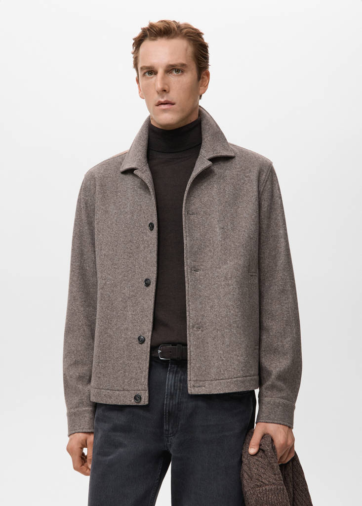 Regular fit. Flannel fabric. Shirt collar. Two side pockets. Long sleeves with buttoned cuffs. Front closure with buttons