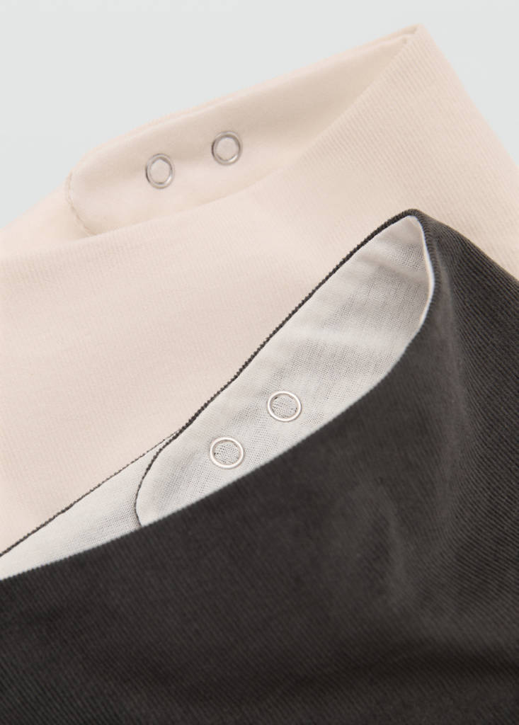 Pack of 2. 100% cotton fabric. Triangular design. Press-stud fastening. With inner lining