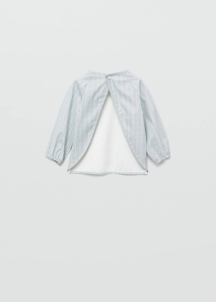 Waterproof fabric. Striped fabric. Straight design. Round neck. Long sleeves. Front patch pocket. Button closure at the back