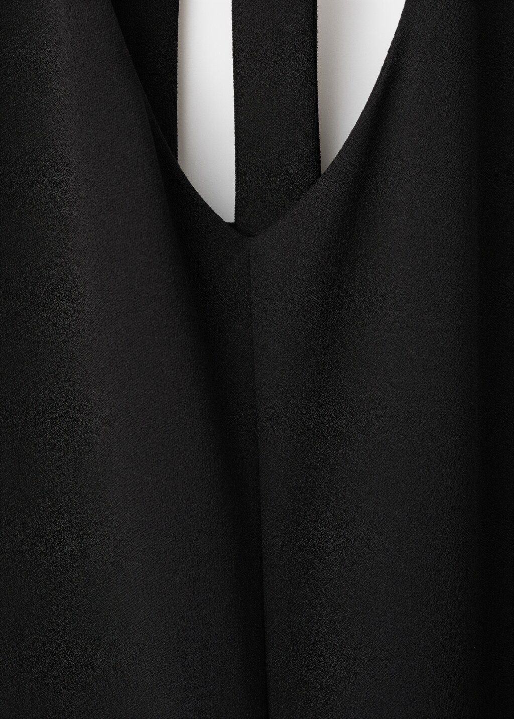 Stretch fabric. Polyester fabric. Long design. Halter neck. V-neckline. Adjustable tie closure. Zip fastening on the back section. Party collection. Party Collection. Christmas Collection. Glossy design.