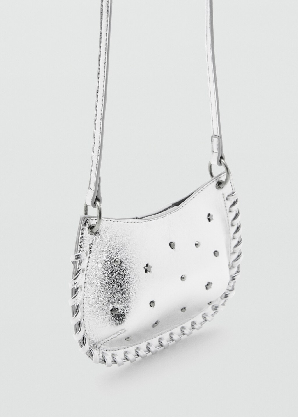 Faux leather. Metallic finish. Star-shaped stud detail. Long strap. Zip closure.