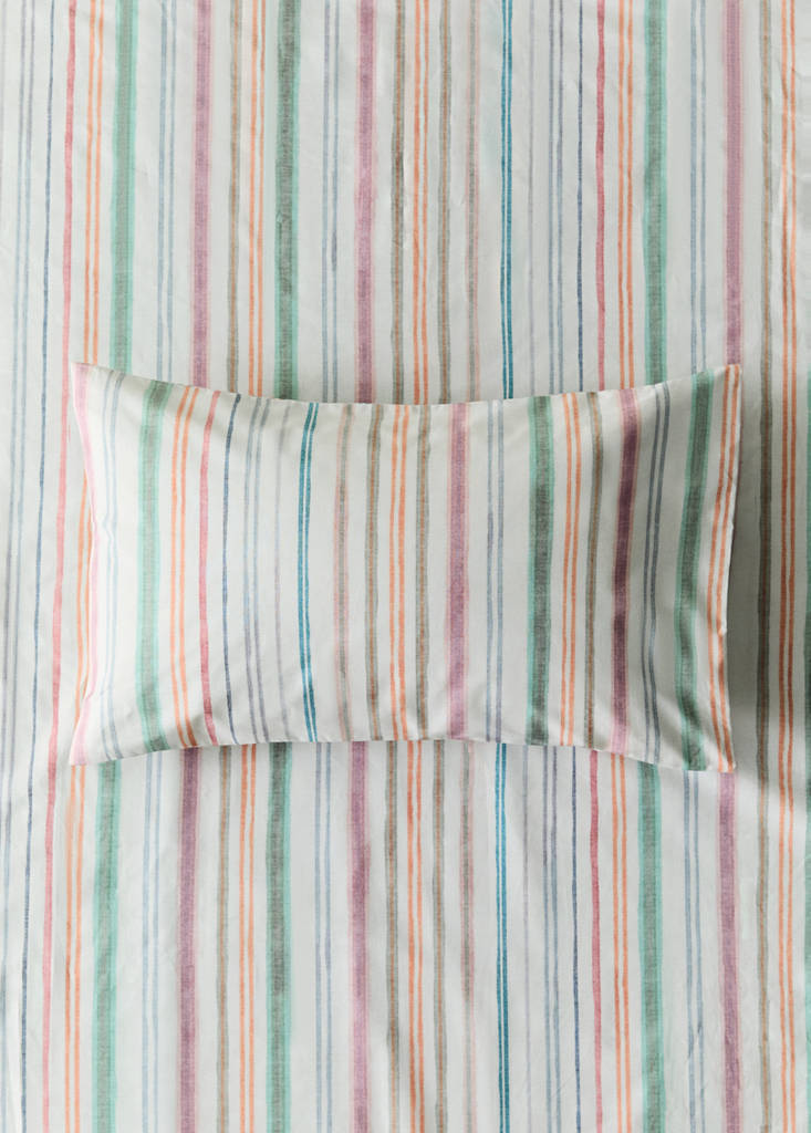 100% Cotton. 200-thread count percale cotton. Size: 30x50cm. Multi-coloured stripe design. Coordinates with more products from the collection