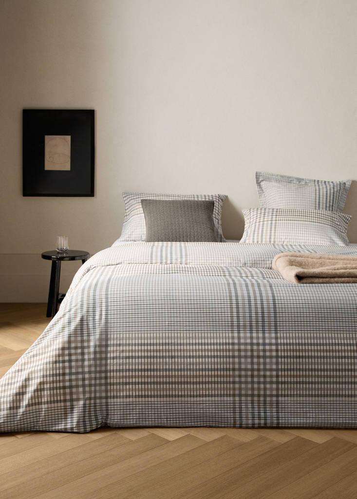 200-thread count percale cotton check-print duvet cover for 135/140 cm bed