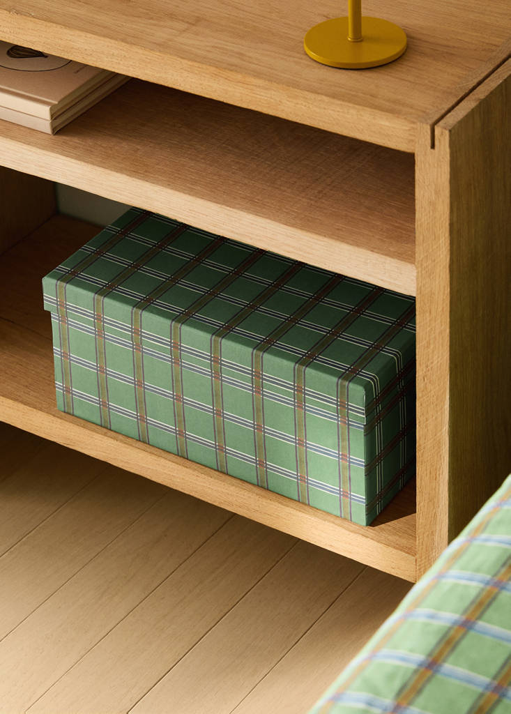100% paper. Length: 32cm. Width: 22cm. Height: 14cm. Printed box, ideal for storing essentials for the little ones in the house. Perfect for decorative or functional use, even for storing storybooks or games, and letting children's imagination run wild. Available in more colours