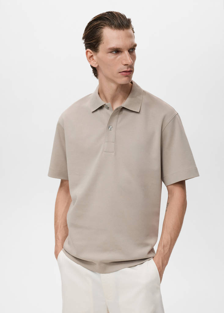 Cotton blend fabric. Relaxed fit. Polo-neck with button closure. Short sleeves. Straight hem. Promotional product