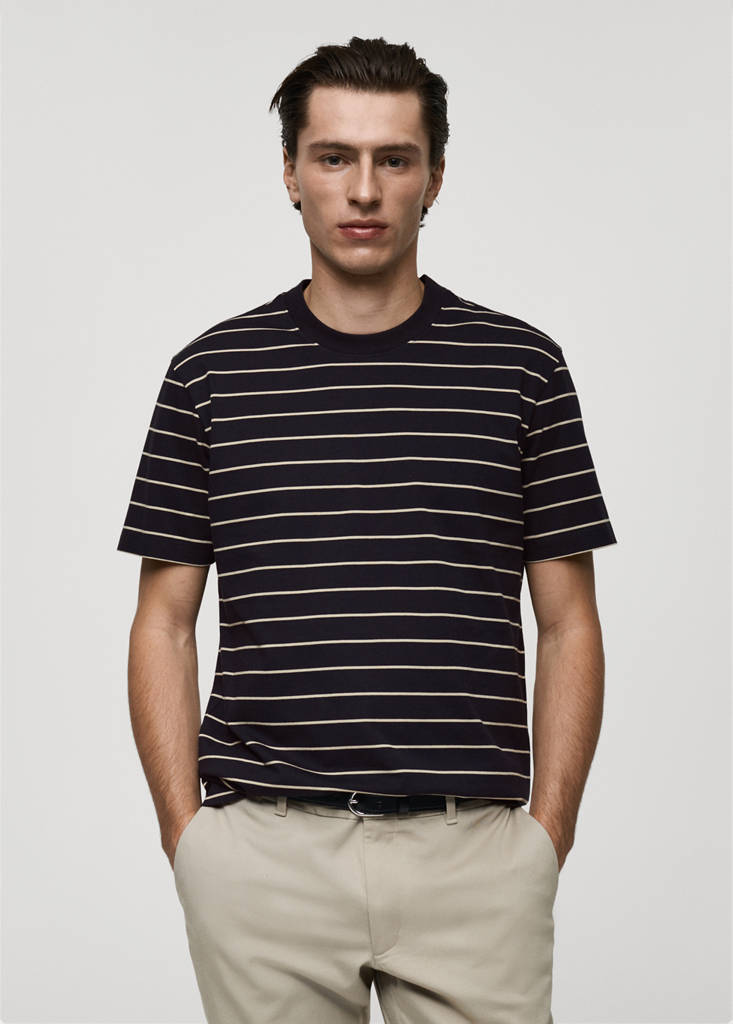 100% cotton striped t-shirtCurrent price [349 kr ]349 krSelect a colourDark NavyThe model is wearing size M and is 188cm tall.Select your sizeXSNot available. I want it!SNot available. I want it!MNot available. I want it!LNot available. I want it!XLNot available. I want it!XXLNot available. I want it!DimensionsNotify meAdd to WishlistSee lookFree delivery to storeRegular fit. Stripe design. 100% Cotton. Sold in a packDetails, composition and careStore availability