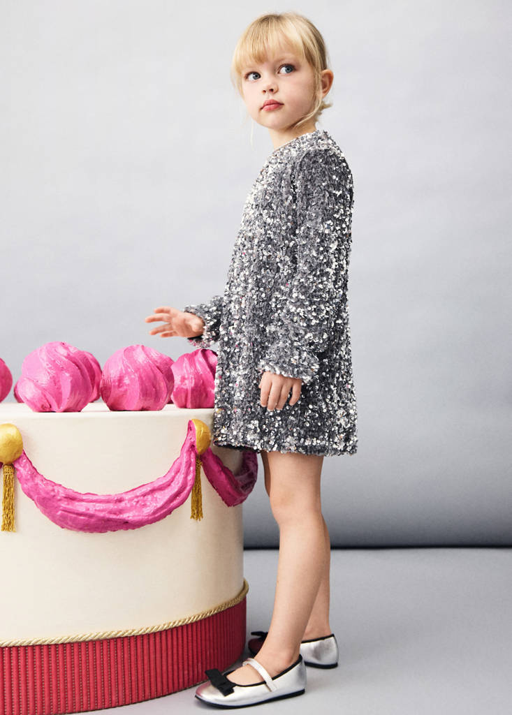 Paljett panel. Kort design. Rak design. Rund halsringning. Långa ärmar med elastiska muddar. Knappstängning i kragen. Innerfoder. Fest- och eventkollektion. Julkollektion