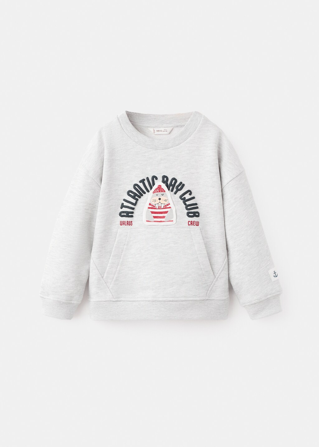 Bomullstyg. Rak design. Rund halsringning. Långärmad. Tryckt motiv på bröstet. Påsydd framficka. Ribbad krage, muddar och fåll. Alla hjärtans dag-kollektion.