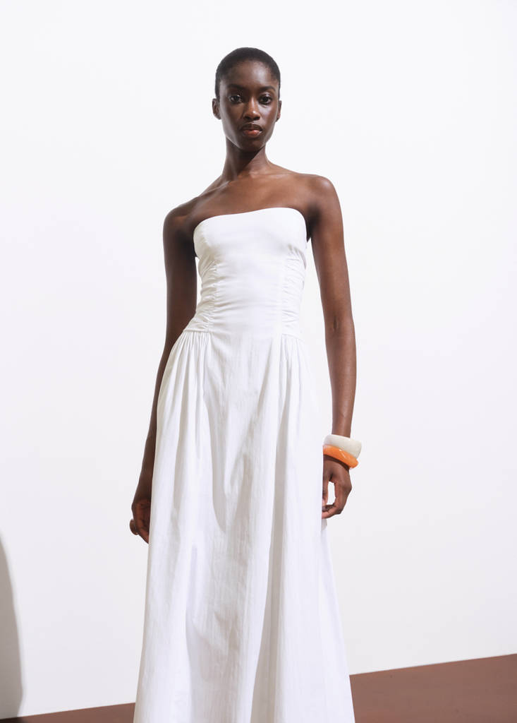 Axelbandslös midiklänningGällande pris [1 049 kr ]1 049 krVälj en färgVitModellen bär storlek S och är 176cm lång.Välj din storlekXSEj tillgänglig. Jag vill ha den!SEj tillgänglig. Jag vill ha den!MEj tillgänglig. Jag vill ha den!LEj tillgänglig. Jag vill ha den!MåttMeddela migLägg till FavoriterVisa lookGratis leverans till butikBomullsblandningstyg. Mididesign. A-linje design. Bandeau. Ärmlös. Rynkad detalj på sidorna. Dragkedja bak. Foder 100% bomullDetaljer, material och skötselTillgänglighet i butik