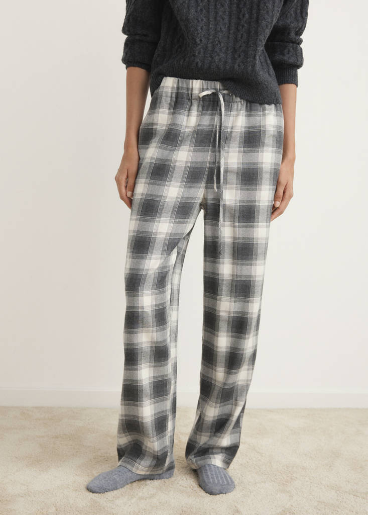 Flanell tyg. Rak design. Lång design. Rut tryck. Justerbart snöre på midjan