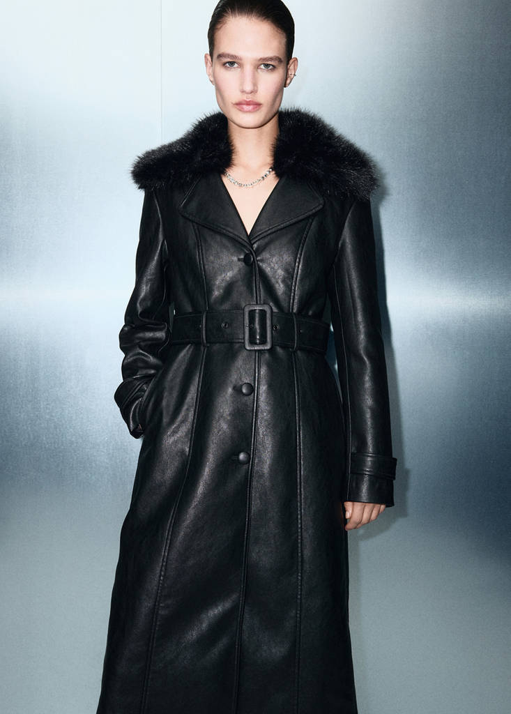 Denna klänning ingår i vår fest- och evenemangskollektion, som är designad för att lyfta din look vid speciella tillfällen. Denna långa, raka klänning är tillverkad i konstläder och har en v-ringad halsringning med krage och avtagbar päls. Den har långa ärmar, hällor, bälte med spänne, två sidofickor och knappstängning fram. Finns i Plus-storlekar