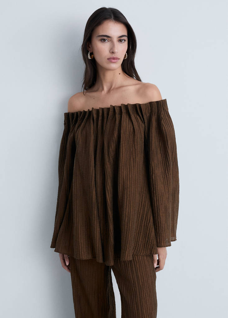 Rynkad blus med textur
