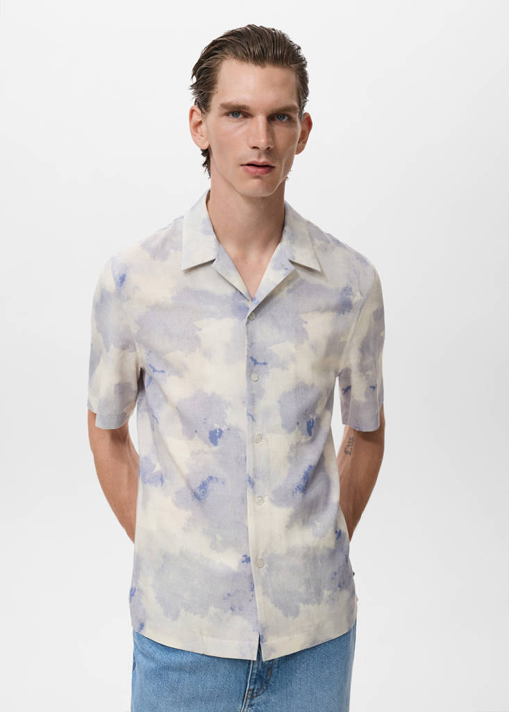Viskos-, linne- och bomullstyger. Regular fit. Bowlingkrage. Knappstängning framtill. Kort ärm. Rak nederkant