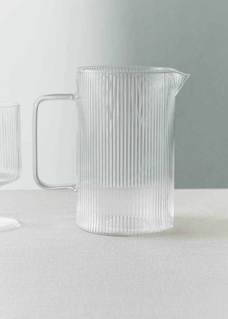 100% borosilikatglas. Transparent design. Detalj med linjer. Minimalistisk och funktionell design. Kan fyllas med vätska. Ger en touch av enkelhet och elegans till ditt bord. Kombinera med fler produkter från kollektionen. Kan diskas i diskmaskin