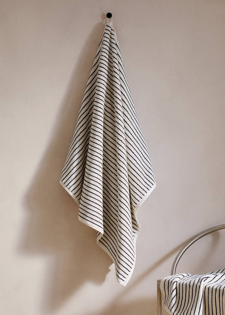 100% Bomull. Storlek: 90x150cm. Vikt: 500gr/m2. Tvåfärgad randdesign. Dess eleganta design kommer att ge ditt badrum en sofistikerad touch. Upplev komforten, texturen och den utmärkta absorptionsförmåga hos denna handduk. Finns i olika färger. Finns i olika storlekar. Kombinera med fler produkter från kollektionen