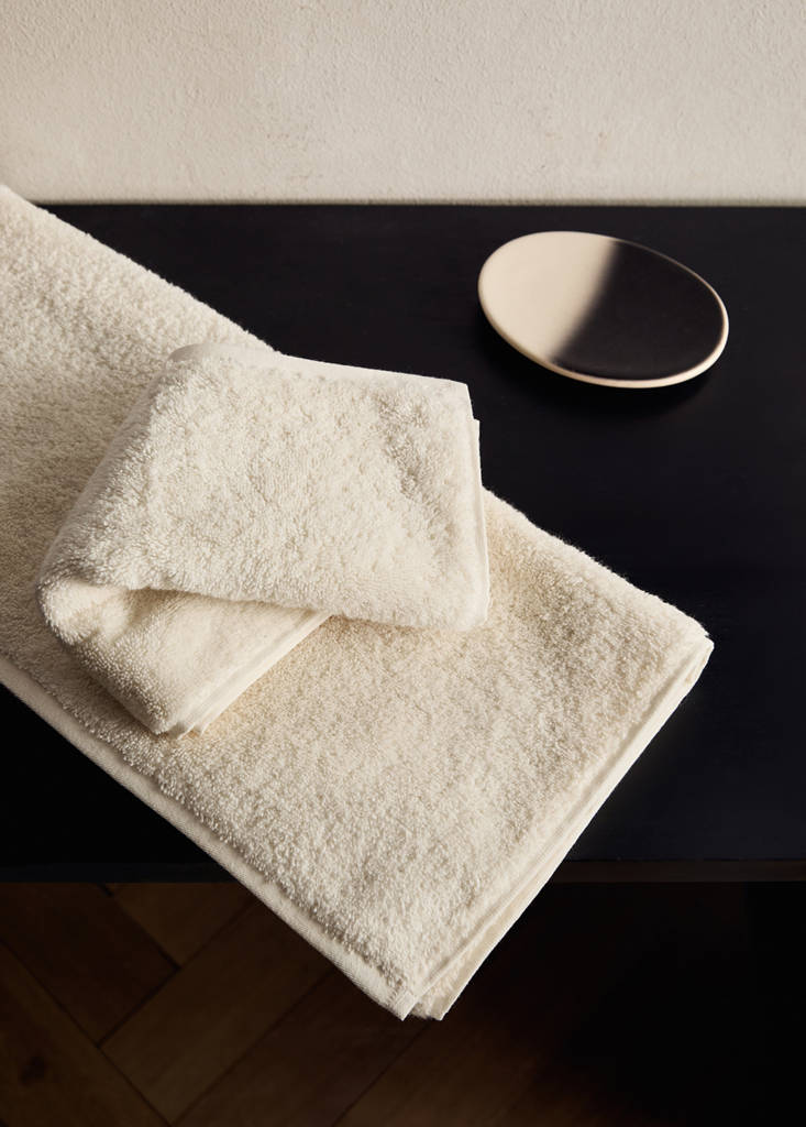 100% Bomull. Storlek: 30x50cm. Vikt: 600 gr/m2. Enfärgad design. Material av hög kvalitet och hållbara. Hög täthet och vikt i 100% bomull för en bra absorbering i ditt badrum. Stort urval av färger för att kombinera med andra handduksmodeller, badrockar och accessoarer från Mango Home. Behaglig och mjuk textur. Upplev maximal mjukhet i dina badtextilier tillsammans med en hög absorptionsförmåga. Kombinera med fler produkter från kollektionen. Gästhandduk. Tyg av naturfiber. Behaglig textur. Kombinerar med de andra storlekarna i kollektionen