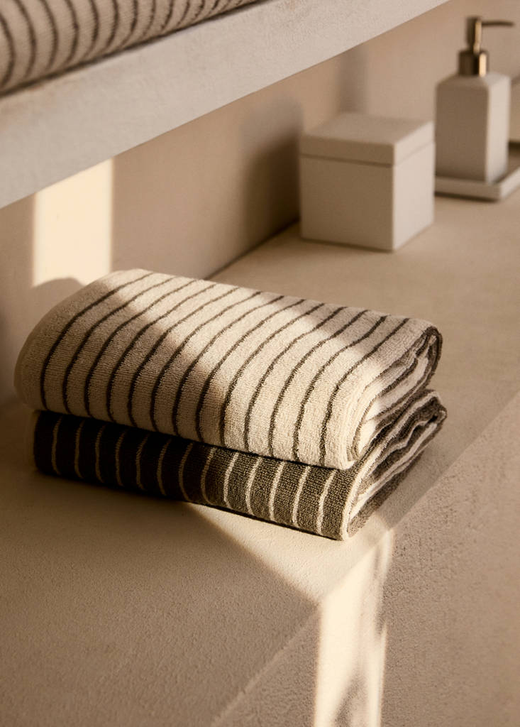 Handduk. Storlek: 50x90 cm. 100% Bomull. Den moderna designen förhöjer vilket badrum som helst, med en kombination av mjukhet och hög absorptionsförmåga. Dess eleganta design kommer att ge ditt badrum en sofistikerad touch. Finns i olika färger. Kombinera med fler produkter från kollektionen