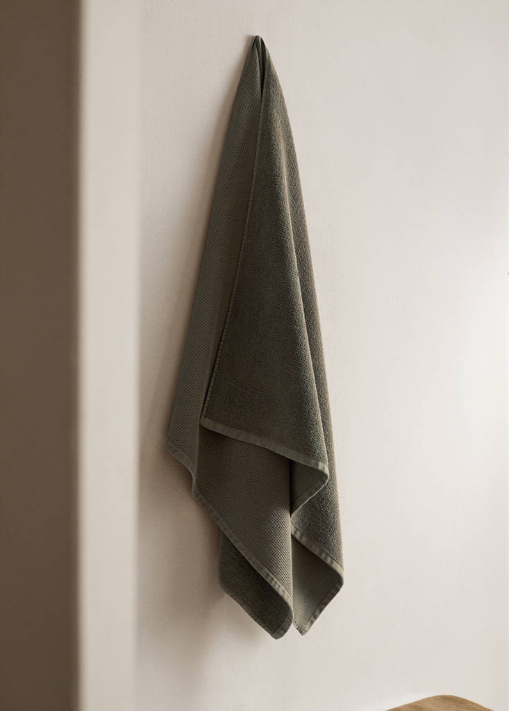 Badhandduk. Mått: 80x150 cm. 100% bomullstyg. Vikt: 650 gr/m2. Randigt mönster. Behaglig textur. Njut av den här handdukens bekvämlighet, mjuka strukturen och absorptionsförmåga. Dess design ger ett ljust inslag i ditt badrum och en klassisk medelhavskänsla. Dess eleganta design kommer att ge ditt badrum en sofistikerad touch. Den är lätt, kompakt och torkar snabbt, perfekt för alla tillfällen. Matchar med fler artiklar från kollektionen