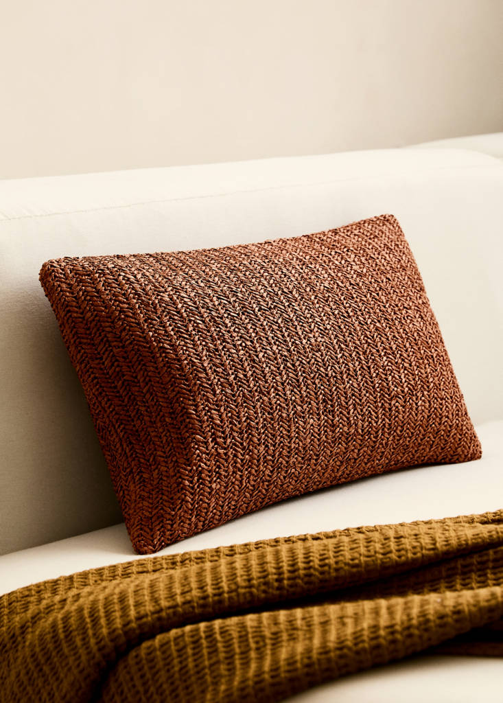 Storlek: 30x50cm. 100% papper. Rafiaeffekt. Naturliga fibrer. Dragkedjestängning. Texturerad design. Fiskbensmönster. Finns i olika färger. Finns i två storlekar. Tvätt rekommenderas inte på grund av produktens material och sammansättning