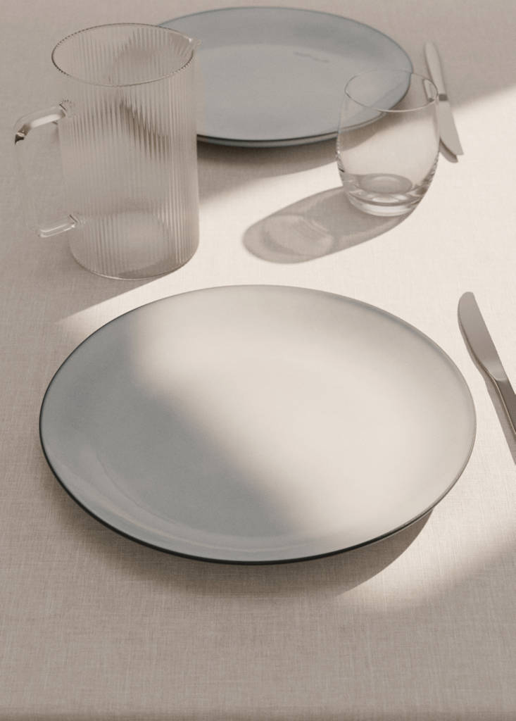 Flat tallrik. 100% stengods. Storlek: 28 cm. Kontrastkant. Elegant och minimalistisk design, idealisk för alla bord. Kan användas i mikrovågsugn. Kan diskas i diskmaskin. Komplettera ditt bord med fler produkter från kollektionen