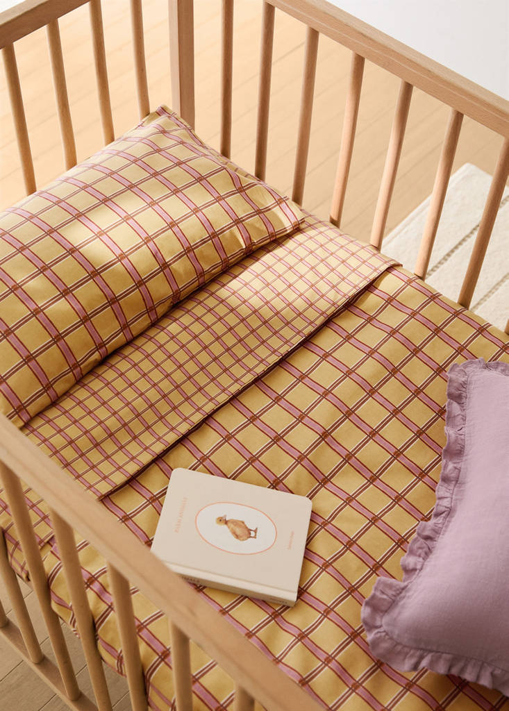 Vändbart påslakan för spjälsäng i percale-bomull med rutmönster